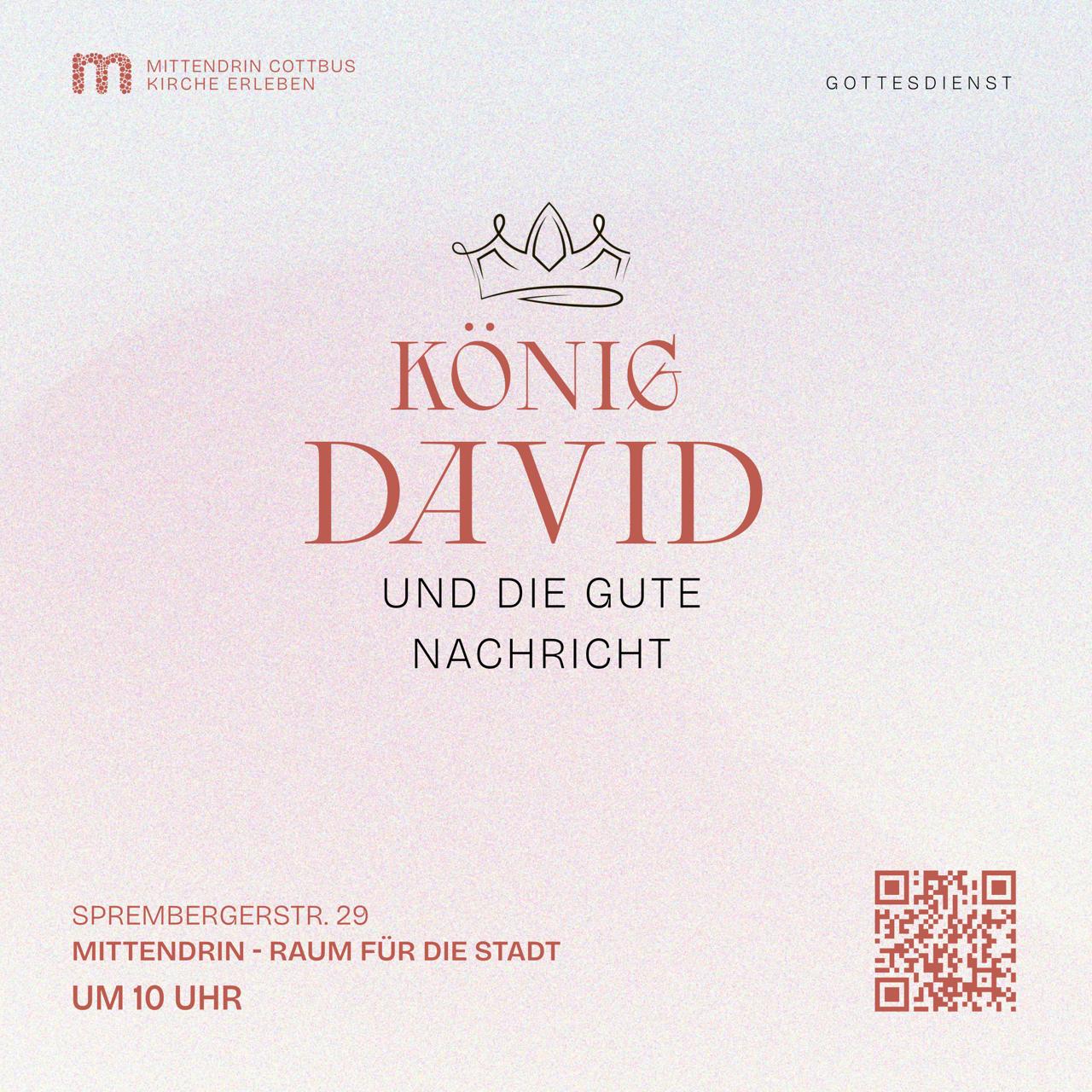 Wir beschäftigen uns in den kommenden Wochen mit einer Reihe zu „König David und die Gute Nachricht“. Wir wollen uns mit der in der Bibel berühmten Person König David beschäftigen und entdecken, was diese alte Geschichte mit uns heute noch zu tun haben könnte.